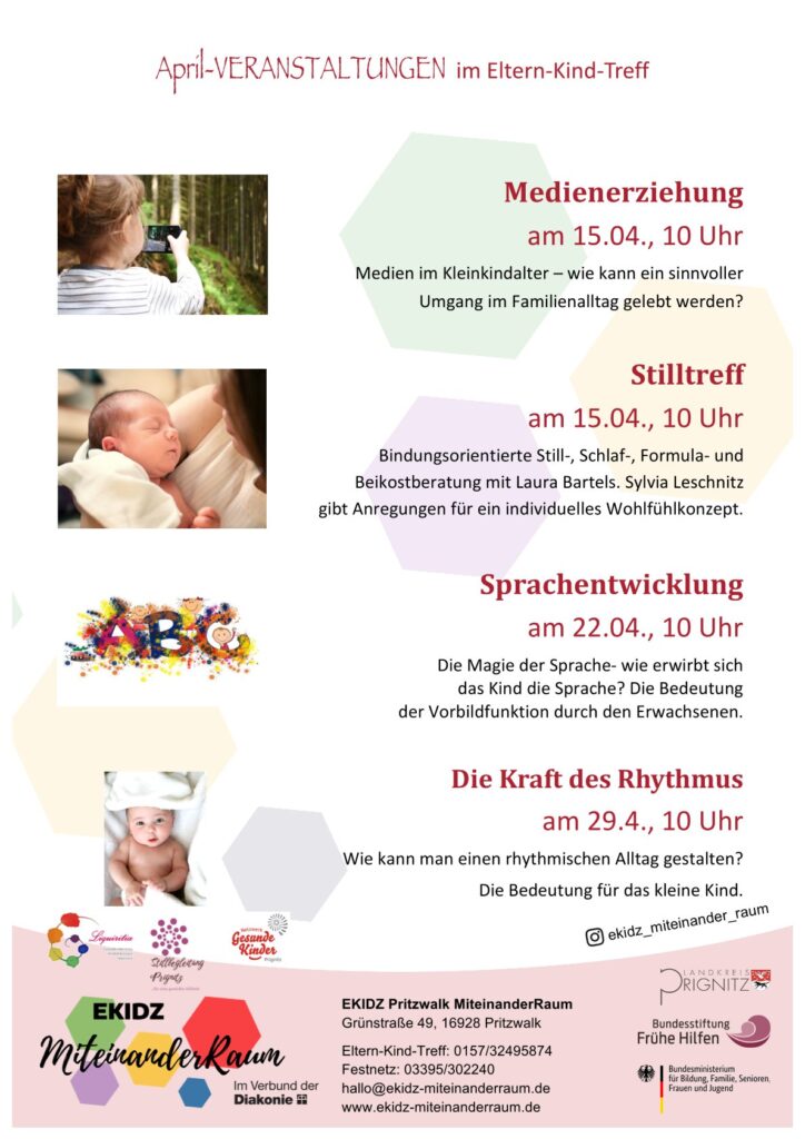 Hier ein Überblick über alle besonderen Veranstaltungen im April in unserem Eltern-Kind-Treff.